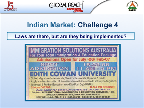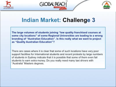 I will focus on two presentations made by me (as MD of one of the oldest and highly respected education consultancies and also as the then President of AAERI), which are available in Public space.
