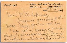 I mentioned “almost all Politicians” believing in overseas education since there was one Prime Minister who did not believe in “overseas education” for Indians. My friend, Mr Paul Chellakumar, who apart from being one of the more experienced student counsellors is also the President of AAAOE and is currently quite active in putting some sense in the UK system, in one of his publication printed the following letter that he had received from Mr Morarji Desai in 1986. The late prime minister is quite clear in his few words…