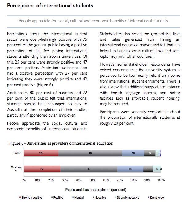 The research, conducted for Universities Australia, found more that 80 per cent of business representatives surveyed and 72 per cent of the public said that international students should be encouraged to stay in Australia on completion of their studies, particularly if sponsored by an employer.